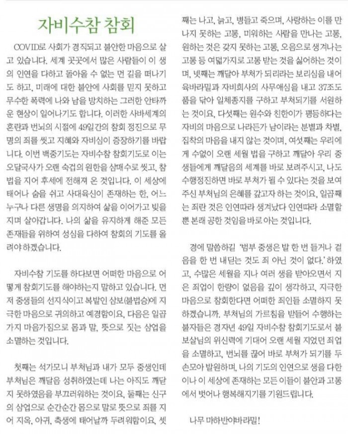 2020년 8월 금선스님 페이지 정보 작성자 수연심 작성일20-08-07 02:43 조회2,742회 댓글0건 본문 2020년 8월 금선스님 댓글목록 등록된 댓글이 없습니다. 이전글 다음글 목록