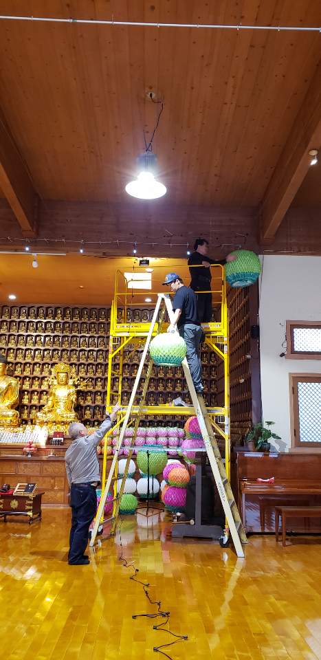 법당 주위로 연등을 매다는 작업과 법당안에 연등도 달기 시작했고 달마사 경내에