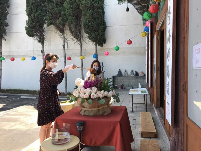 헌화와 관불(애기 부처님 목욕 의식)을 할수 있도록 손 소독제, 마스크,