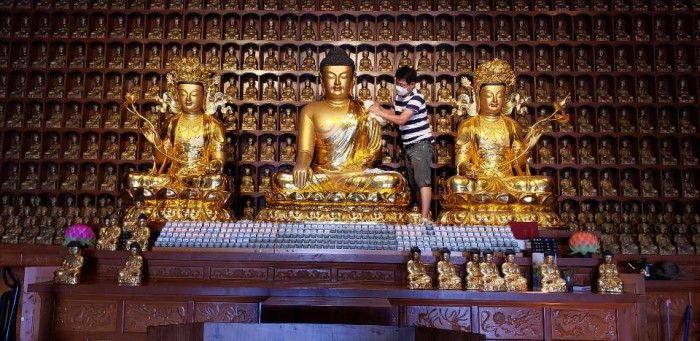 5월 17일 - 부처님오신날 준비 도량 대청소와 불기 닦기를 하였습니다.