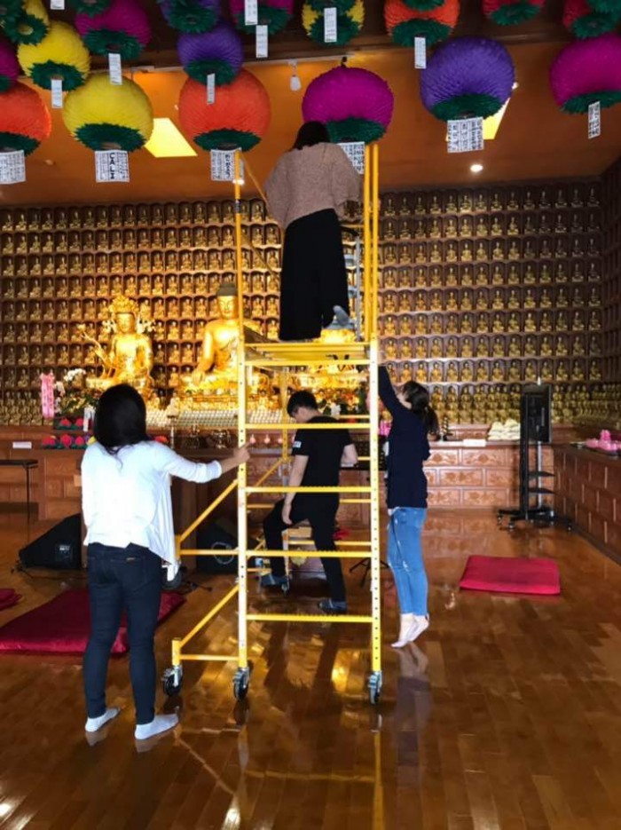 4월 27일 - 부처님오신날 봉축 준비로 법당밖에 연등 달기를 하였습니다