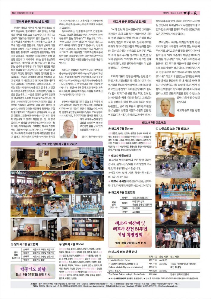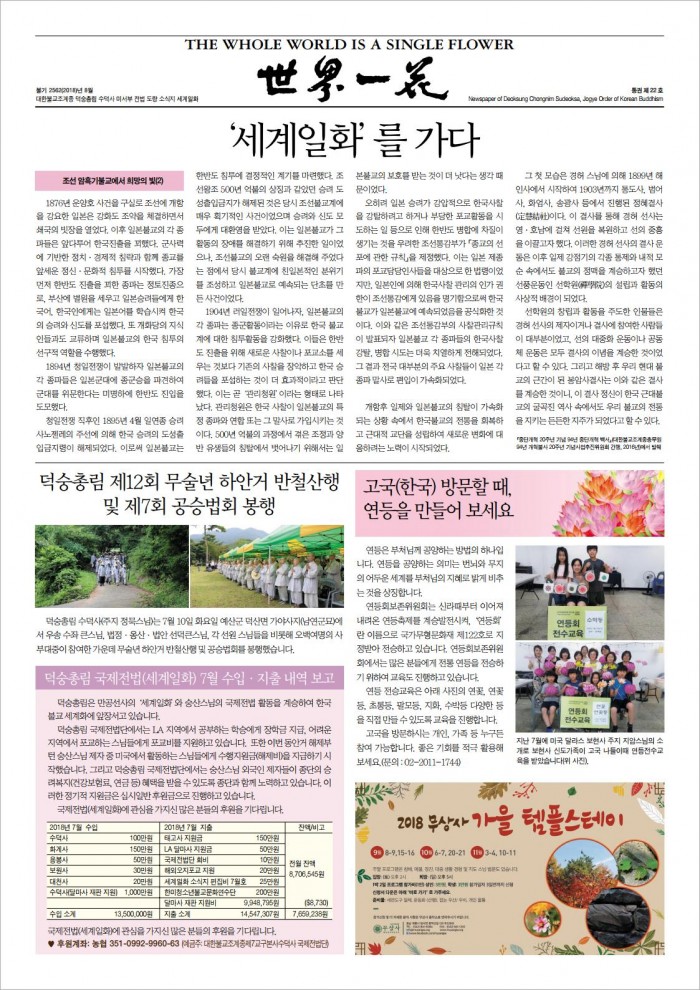 2018년 8월 소식지 > 세계일화 소식지