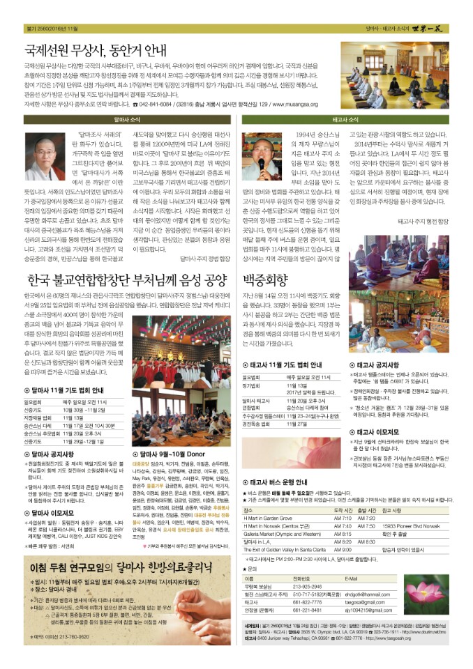 덕숭총림 수덕사 미서부 전법도량, LA달마사입니다.