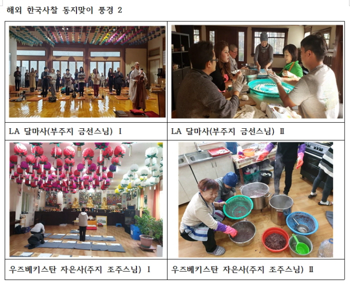 해외에서도 동짓날을 맞이하여 팥죽을 준비하고 법회를 보는 모습들이 정겹게만 느껴집니다.
