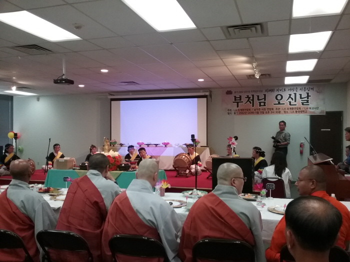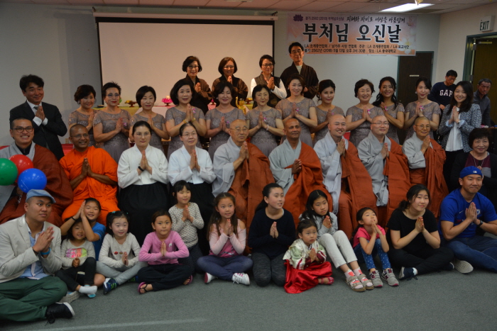 ‘부처님오신날’ 합동봉축법회가 조계종연합회와 남가주사원연합회 주최, LA 조계종연합회와 포교사단 주관으로 LA 동국대에서 열렸다. 봉축위원장 현일스님(LA조계종연합회장)을 비롯하여 각 사찰의 주지스님과 동국대 이승덕 총장님, 불교계 지도자들과 사부대중 150여 명이 참석하여 부처님오신날을 축하했다.