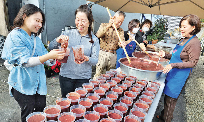 1년 중 밤이 제일 긴 동지(22일)를 앞두고 동지 팥죽을 쑤어 연말 훈훈한 인심을 나누는 행사가 17일 LA 한인타운에서 열렸다. 대한불교조계종 LA 달마사(주지 금선스님)에서 열린 이번 행사에서 달마사 측은 200여명 분량의 동지 팥죽과 동치미를 준비해 신도 및 이웃 주민들과 함께 나누며 저물어가는 한 해의 의미를 되새겼다. 이날 봉사자들이 이웃과 나눌 동지 팥죽을 준비하며 활짝 웃고 있다.