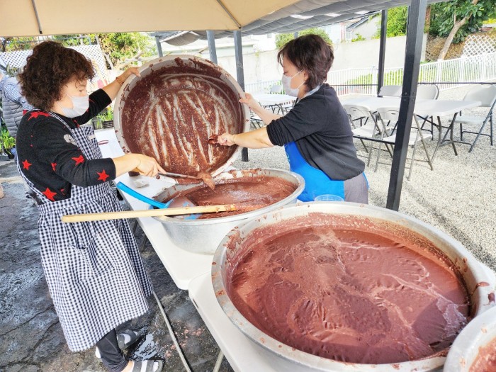팥죽 담았어요