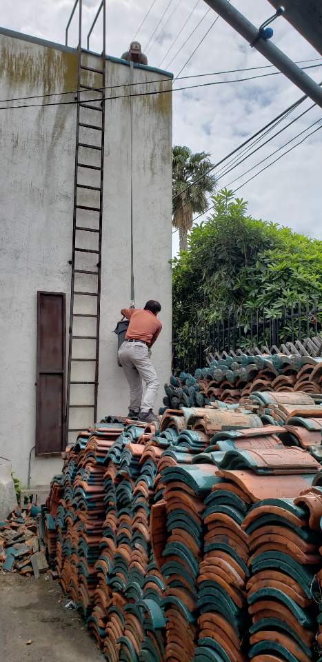 법당 지붕에 있는 기와를 옮기는 작업을 하였습니다.