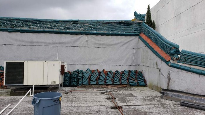 법당 지붕 방수공사 2단계 (기와 옮기기)
