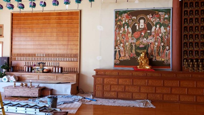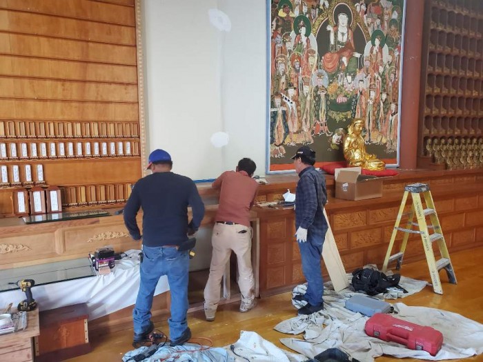 불단 장엄불사 시작 10-21-2019 페이지 정보 작성자 수연심 작성일19-10-25 03:15 조회2,545회 댓글0건 본문 10월 21일부터 지장단과 신중단 교체 및 조사단 (숭산스님) 조성 불사를 시작하였습니다.공사 담당은 법성 최병국 거사님이 해주셨습니다.지장 보살님 연화좌 및 숭산스님 불명패 조성과 탱화 교체 및 신중단의 높이도 조절을 하였습니다. 댓글목록 등록된 댓글이 없습니다. 이전글 다음글 목록