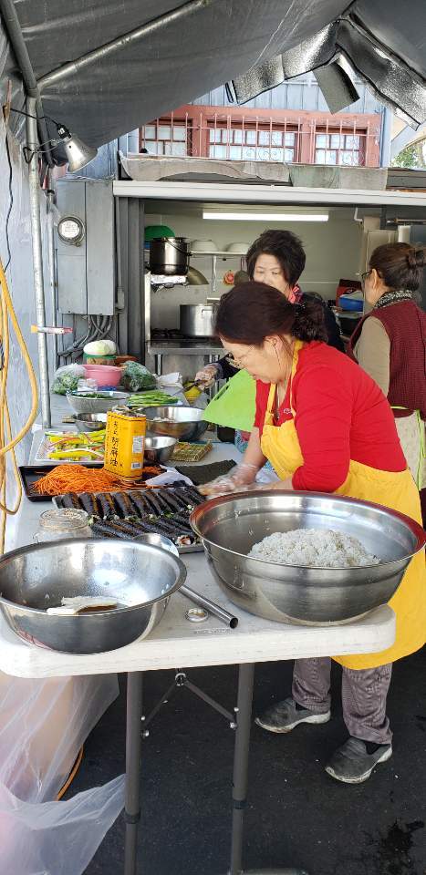 오늘 일요법회에 4조 봉사자 보살님들께서 김밥 점심 공양을