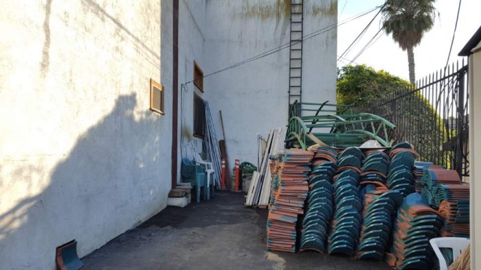 법당뒤에 기와를 차곡차곡 정리하고 포도밭옆