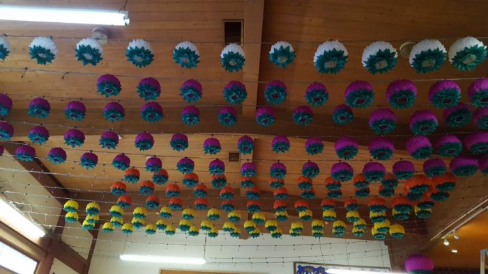다양한 색깔로 화려하게 만든 보살님들의 정성이 가득한 연등을 법당안에 올렸습니다.