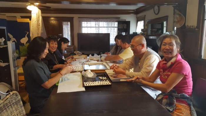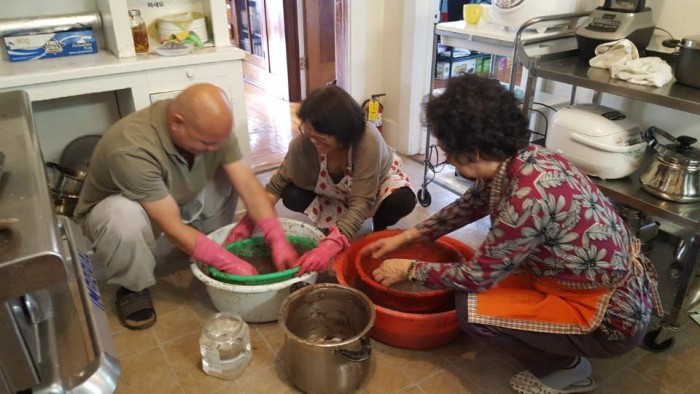 찹쌀을 익반죽하여 새알심을 만드느라 달마사 후원에