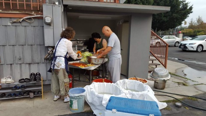 가져오셔서 배추김치를 담기위해 스님들과