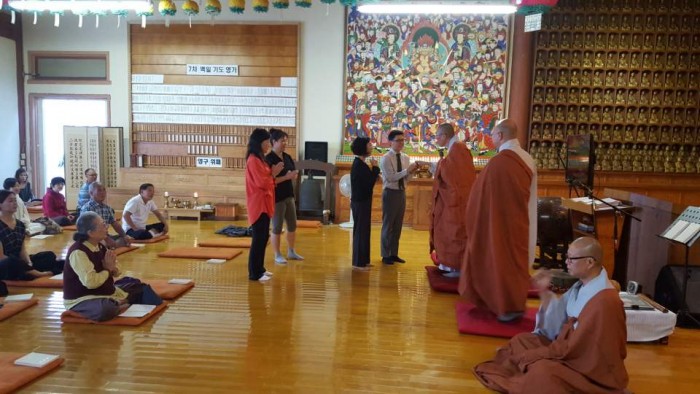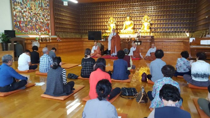 오셔서 신도분들께 인사하고 주지스님께
