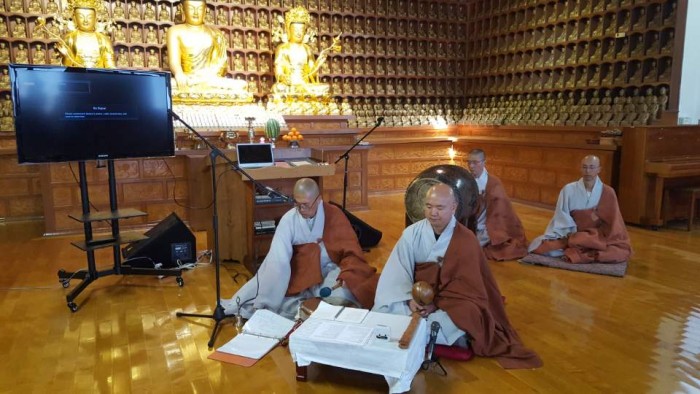 오늘부턴 정상적으로 법당에서 법회를 진행하엿다.