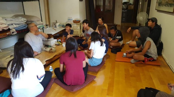 법회의식이 끝나고 법당 2층 선방에 모여서 스님과 차를 마시는 시간도 가졌습니다.