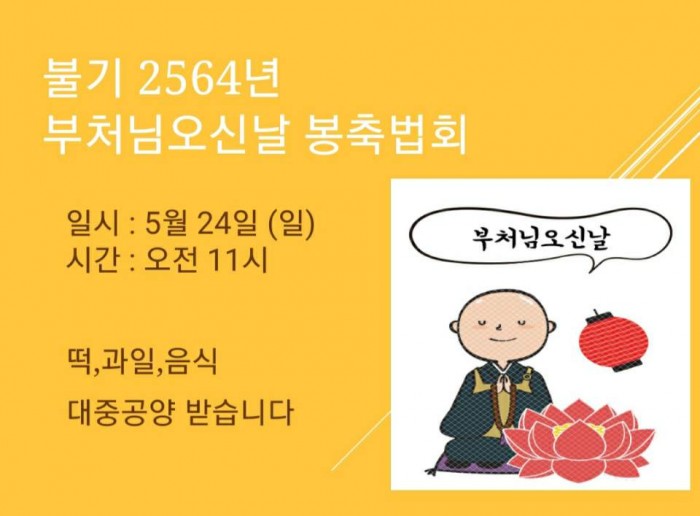 저희 달마사에서도 종단의 방침에 따라 5월 24일 일요일에 부처님 오신 날 봉축 행사를 봉행하기로
