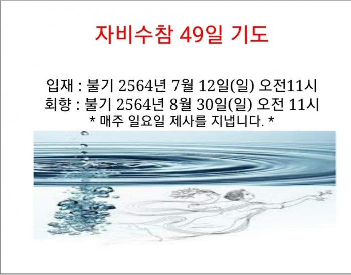이 세상에 인연을 다하고 먼저 가신 조상님들의 극락왕생을 기원하며 49일간 자비수참 기도를 봉행
