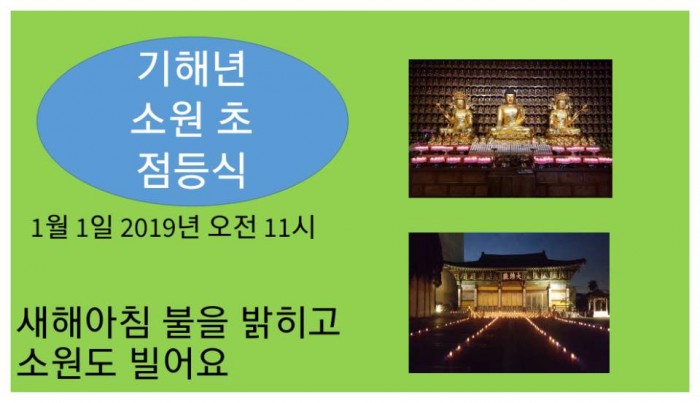 기해년맞이 소원초 밝히기 페이지 정보 작성자 수연심 작성일18-12-01 15:50 조회5,687회 댓글0건 본문 2019년 기해년 새해 아침 소원초를 밝히고 소원도 빌어보세요. 댓글목록 등록된 댓글이 없습니다. 이전글 다음글 목록