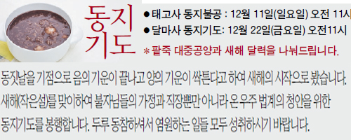 *태고사 동지불공 : 12월 11일(둘째 주 일요일) 오전 11시