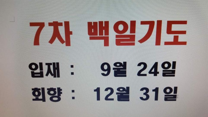 7차 백일기도 회향 페이지 정보 작성자 수연심 작성일17-12-04 00:00 조회5,273회 댓글0건 본문 천일기도중 7차 백일기도 입재를 9월24일에 시작하여 12월 31일이면 회향일입니다. 댓글목록 등록된 댓글이 없습니다. 이전글 다음글 목록