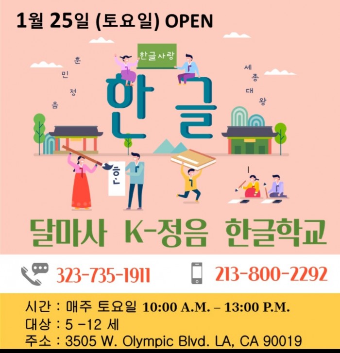 K-정음 한글학교 1월 25일 개강