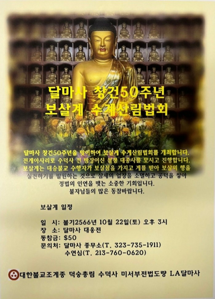 달마사 창건 50주년을 맞이하여 보살계 수계산림법회를 개최합니다.