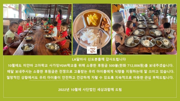 미얀마 사가잉 YGW 학교에 후원금을 전달하였습니다.