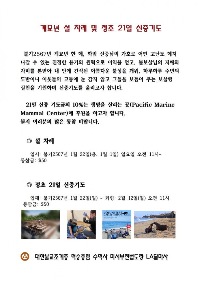 정초 신중기도 * 입재 불기 2567년 1월 22일