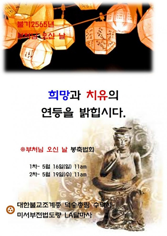 부처님 오신날 봉축법회 페이지 정보 작성자 수연심 작성일21-03-12 05:31 조회3,154회 댓글0건 본문 불기 2565년 부처님오신날 봉축법회 안내 1차 - 5월 16일 (일) 오전 11시 2차 - 5월 19일(수) 오전 11시 댓글목록 등록된 댓글이 없습니다. 이전글 다음글 목록