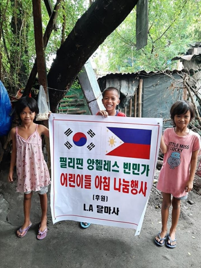 필리핀 앙헬레스 빈민가 아이들에게 아침 공양을 10월부터는 월 2회로 하기로 하였습니다.