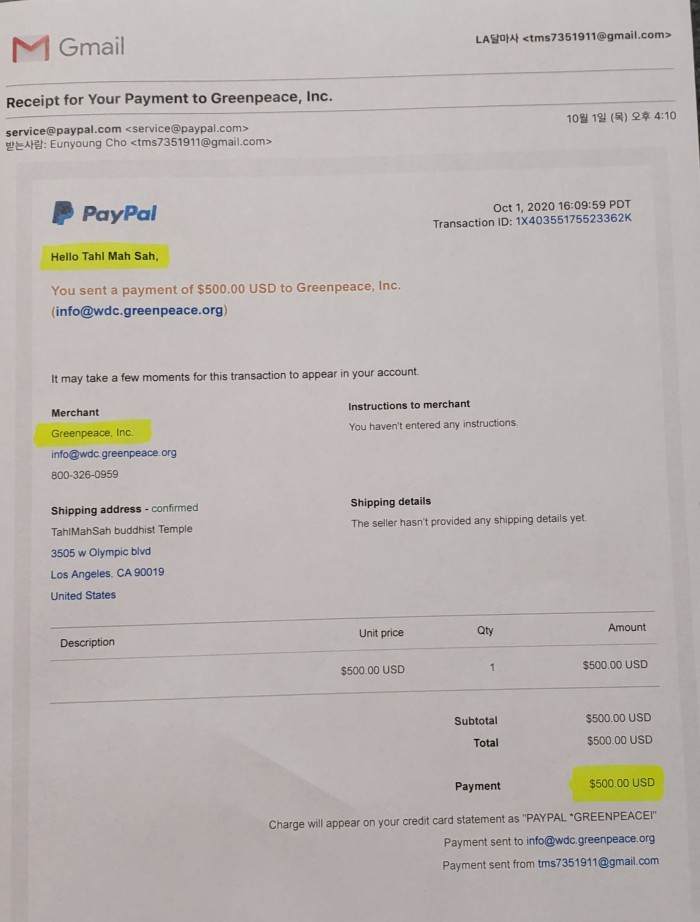 GreenPeace 세계 환경보호 단체에 기부했어요 페이지 정보 작성자 수연심 작성일20-10-08 03:46 조회3,565회 댓글0건 본문 추석 차례와 한가위 21일 감사기도에 뜻깊은 행사를 함께 했습니다.기도금의 10% (500불)을 Greenpeace 세계 환경보호 단체에 달마사 이름으로 기부를 하였습니다.동참해주신 신도님들 모두에게 감사 인사 드립니다. 댓글목록 등록된 댓글이 없습니다. 이전글 다음글 목록