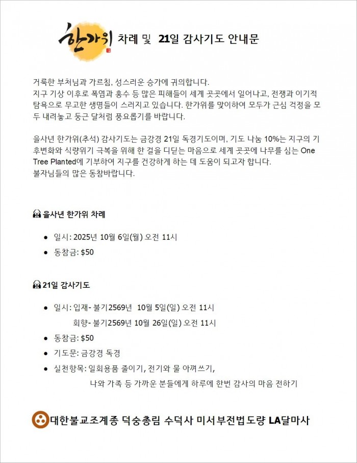 한가위 21일 감사기도